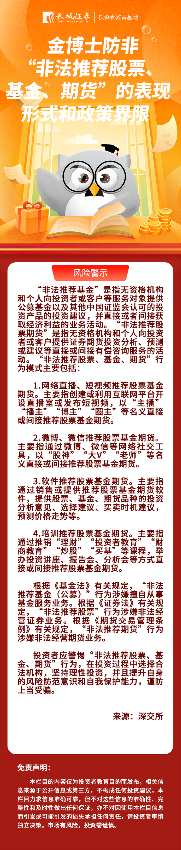 (免责声明:本文仅为投资者教育之目的而发布,不构成投资建议。投资者据此操作,风险自担。长城证券投资者教育基地力求本文所涉信息准确可靠,但并不对其准确性、完整性和及时性做出任何保证,对因使用本文引发的损失不承担责任。)