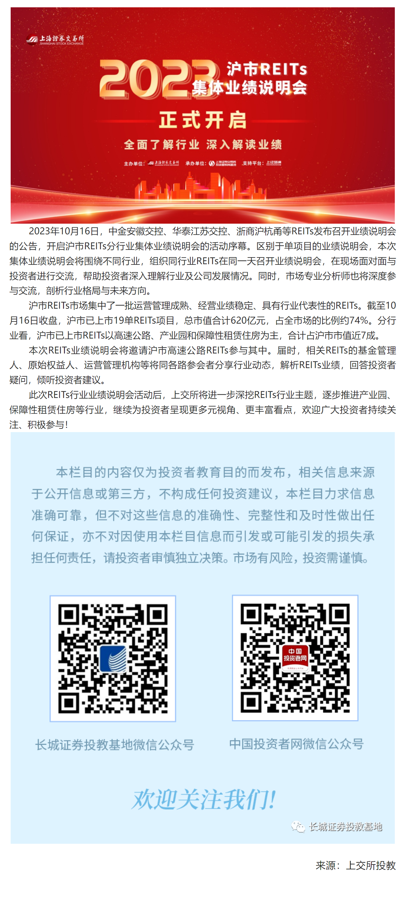【长·分享】活动预告丨沪市REITs分行业集体业绩说明会活动正式开启