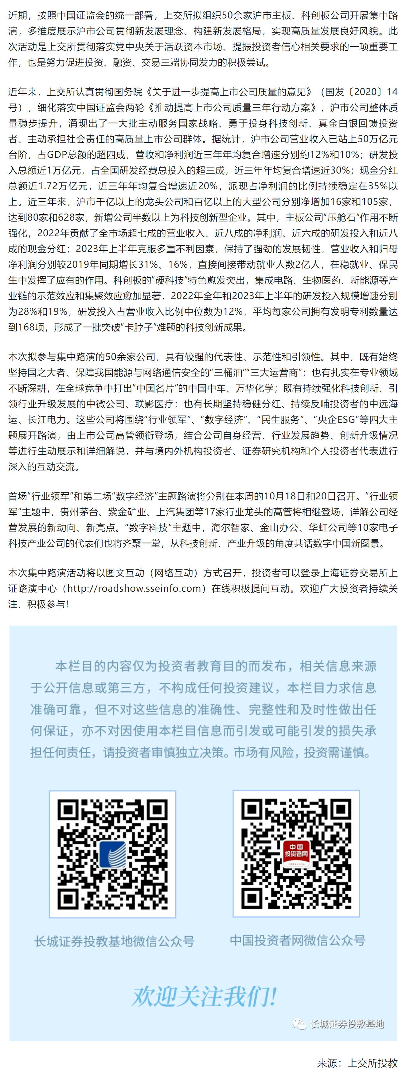 【长·分享】努力推动市场各方深度交流 上交所拟组织开展2023年上市公司集中路演