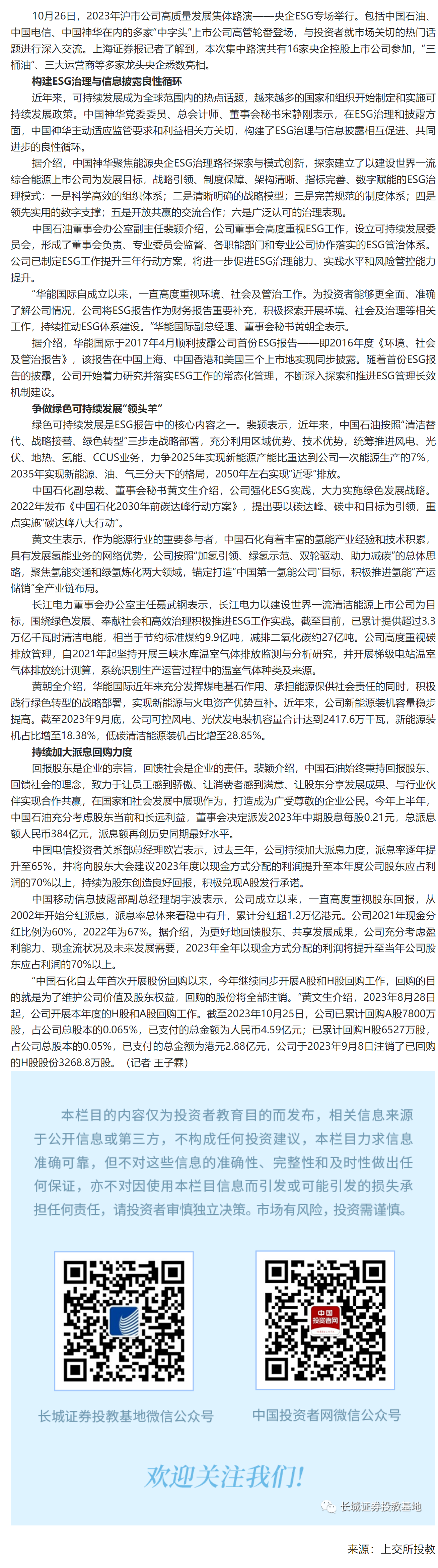 【长·分享】媒体视角 十六家央企亮相上交所ESG集体路演专场