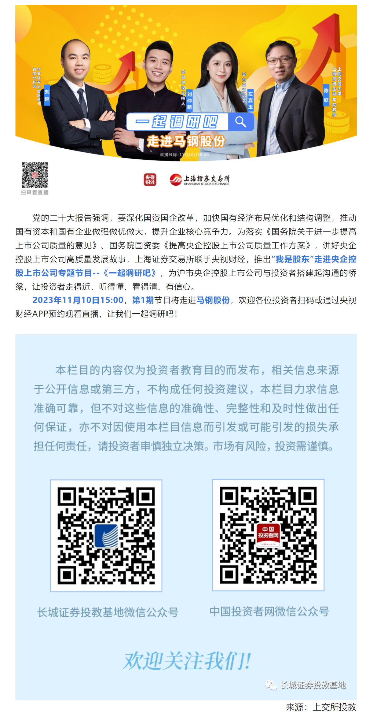 【长·分享】活动预告 “我是股东”走进央企控股上市公司专题节目——央视财经《一起调研吧》第1期