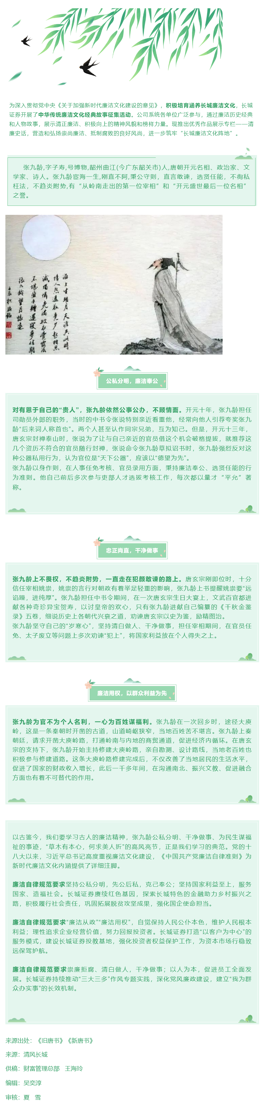 【防范假冒证券公司名义实施诈骗活动宣传月】清廉史话①_“风度得如九龄否?”——张九龄