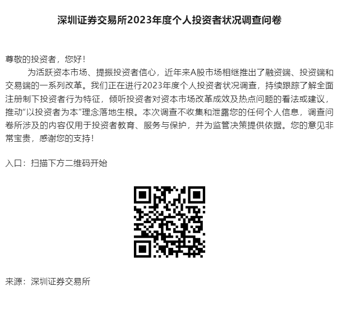 深圳证券交易所2023年度个人投资者状况调查问卷