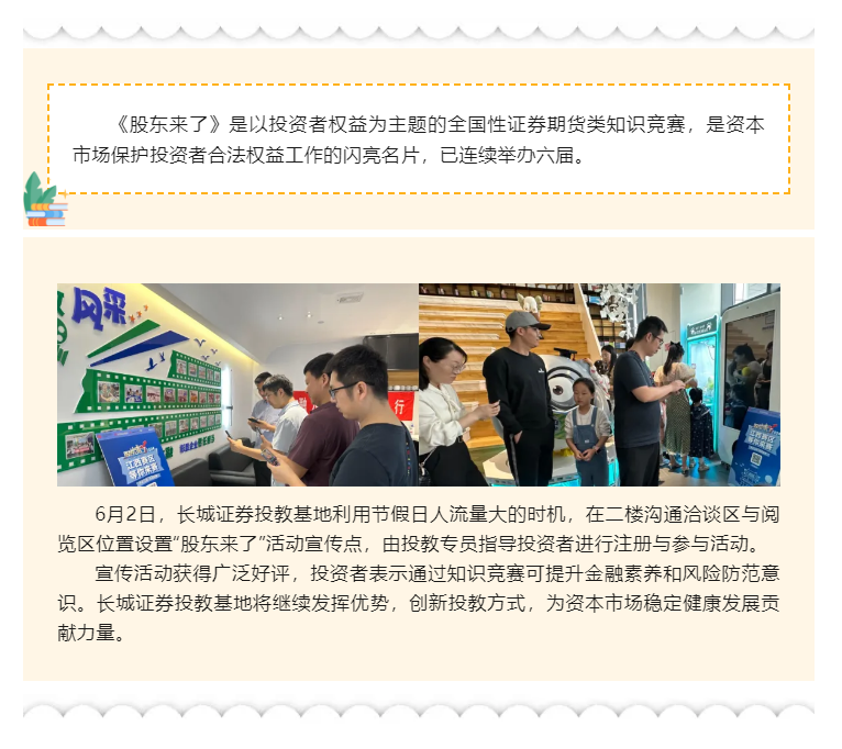 【城·活动】全国防范非法证券期货基金宣传月_2024“股东来了”知识竞赛宣传在长城证券投教基地开展