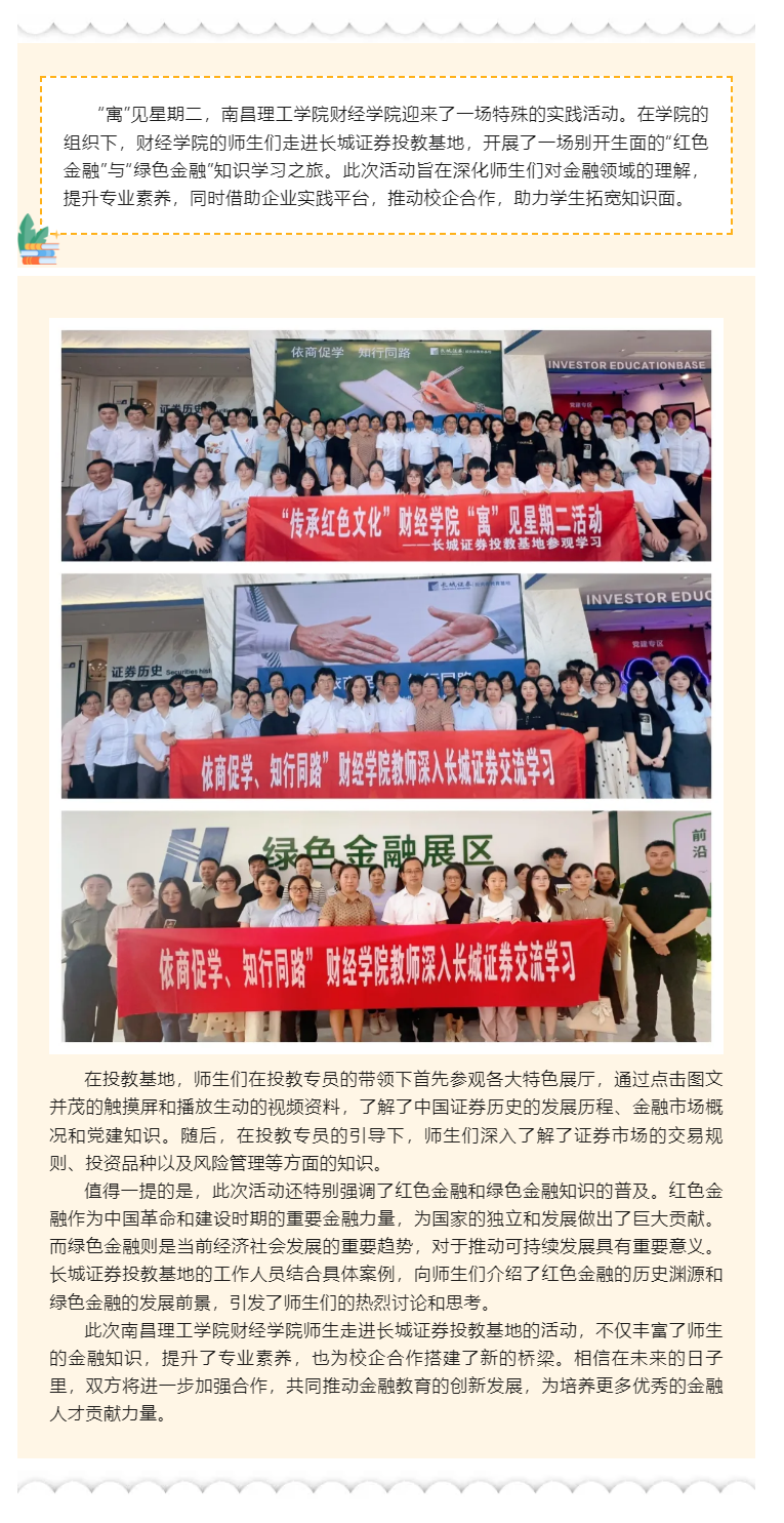 【城·活动】踔厉奋发新征程 投教服务再出发_深化学习“红色金融”与“绿色金融”-南昌理工财经学院走进