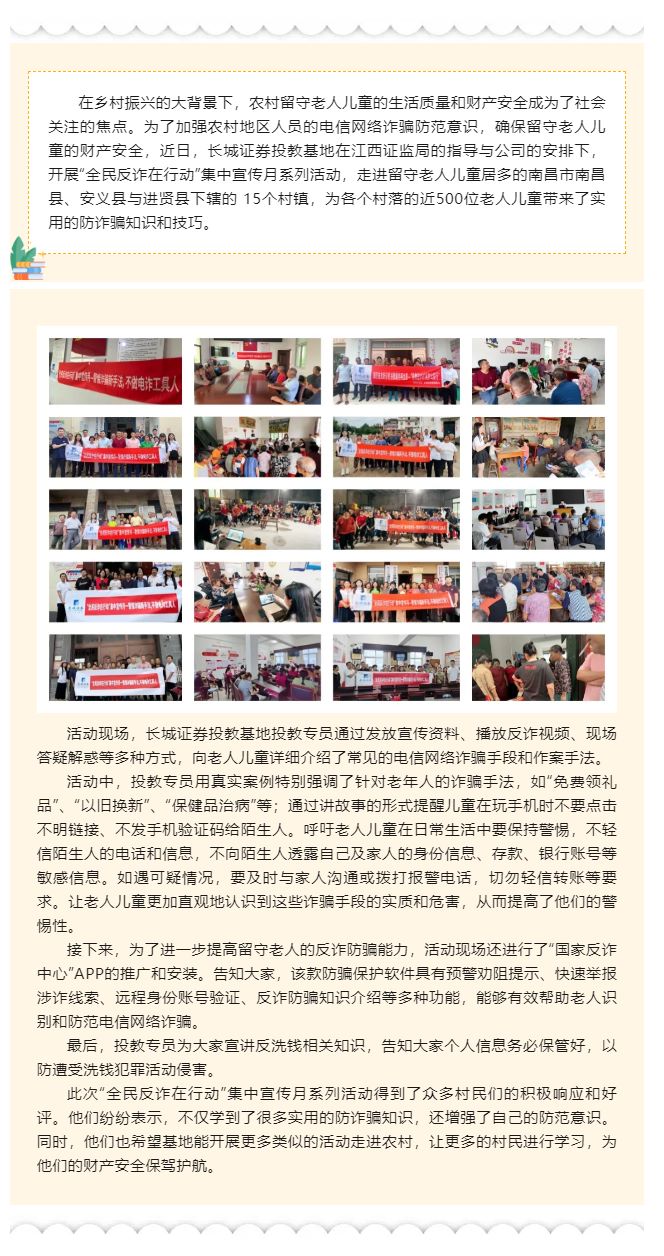 【城·活动】“全民反诈在行动”集中宣传月--长城证券投教基地走进乡村,留守老人儿童成重点防护对象