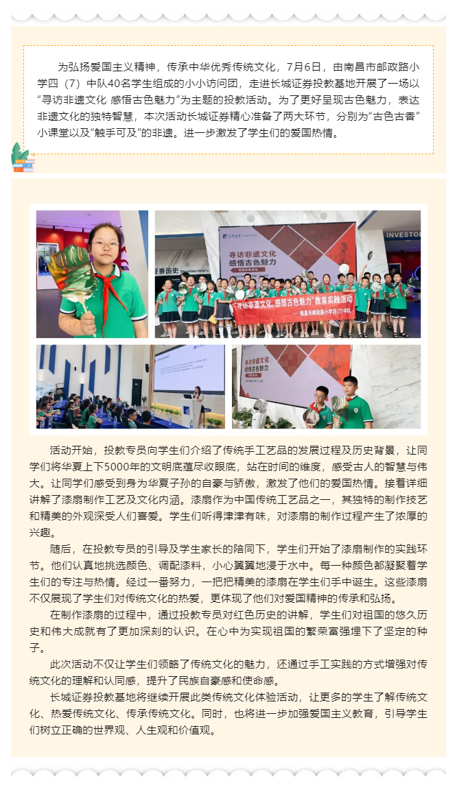 【城·活动】“寻访非遗文化 感悟古色魅力”—邮政路小学走进长城证券投教基地