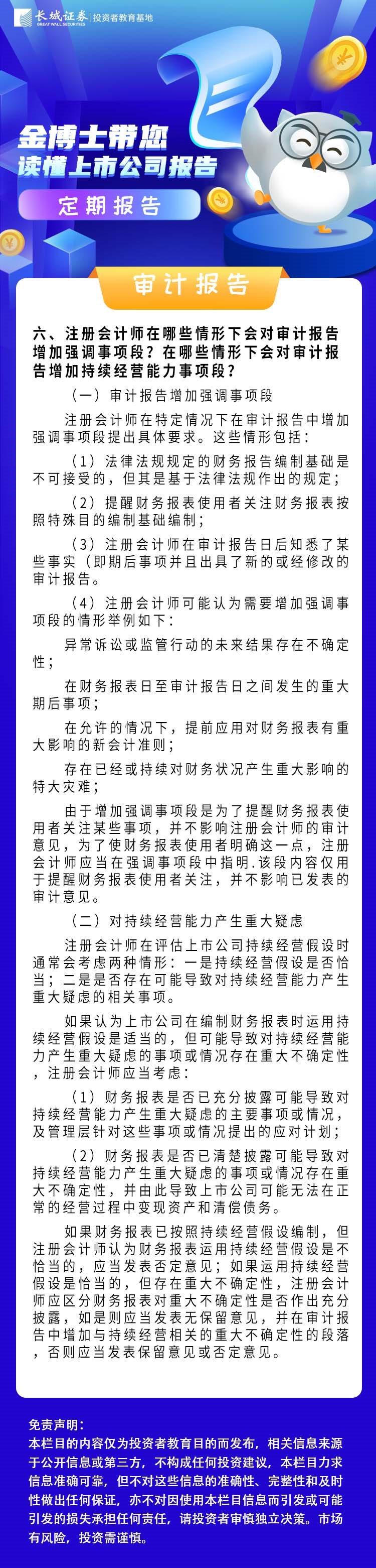 【5·15全国投资者保护宣传日】长·原创丨读懂上市公司定期报告之注册会计师在哪些情形下会对审计报告增加强调事项段?在哪些情形下会对审计报告增加持续经营能力事项段?