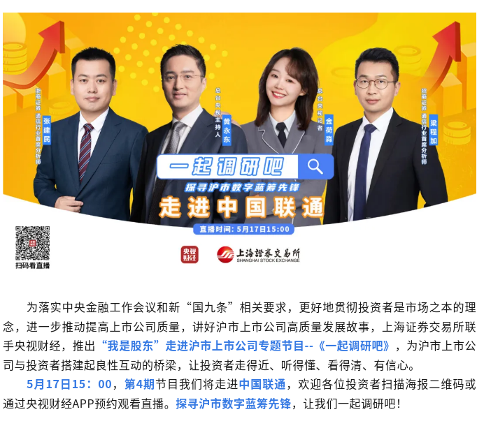 【上交所投教】5·15专栏 “我是股东”探寻沪市数字蓝筹先锋暨央视财经《一起调研吧》第4期