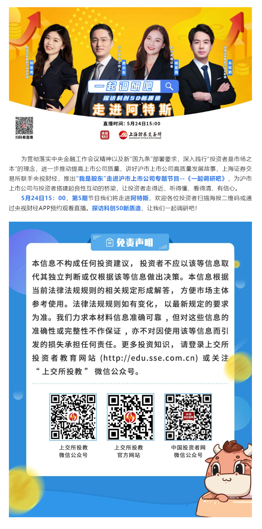 【上交所投教】活动预告_“我是股东”探访科创50新质造暨央视财经《一起调研吧》第5期