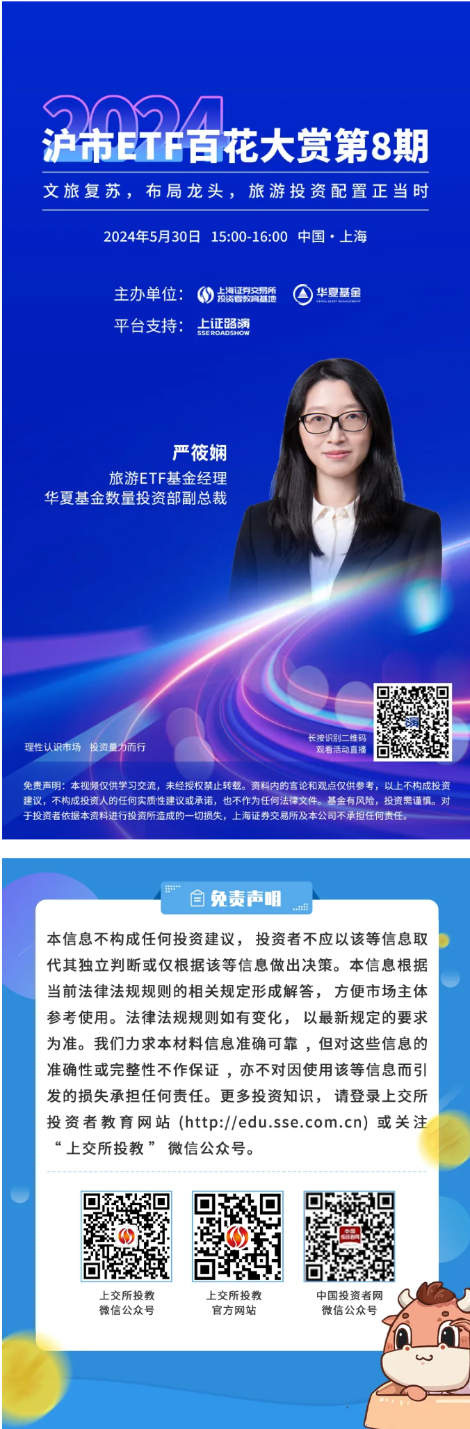 【上交所投教】活动预告 2024年沪市ETF百花大赏第八期:文旅复苏,布局龙头,旅游投资配置正当时