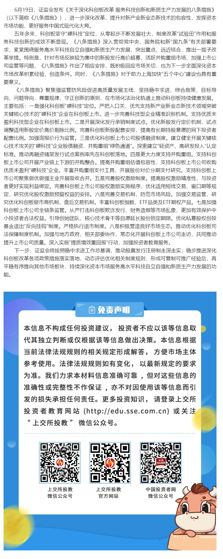 【证监会发布】证监会发布《关于深化科创板改革 服务科技创新和新质生产力发展的八条措施》